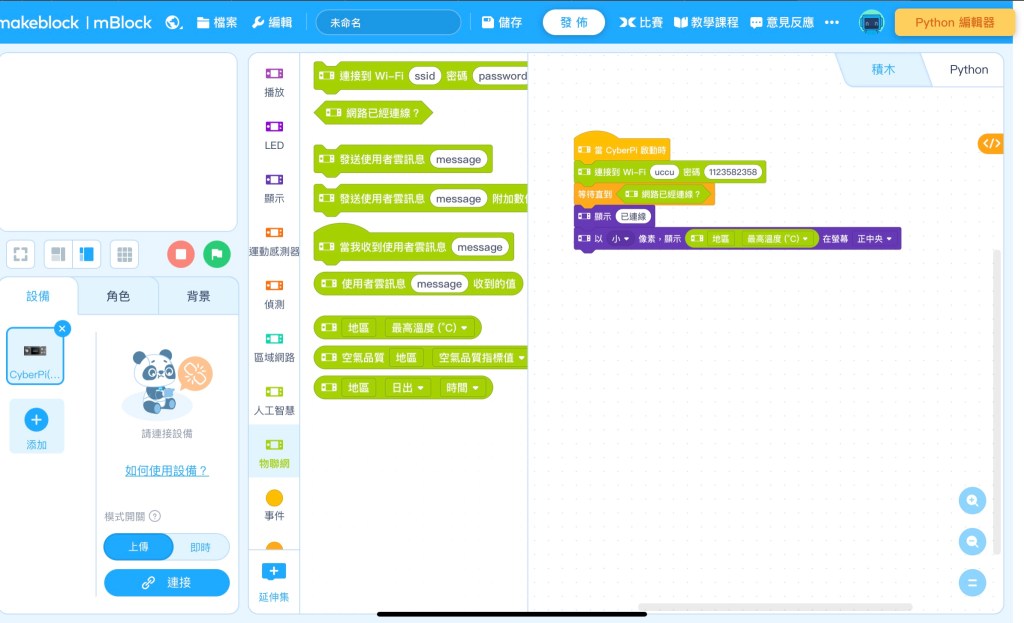 [mblock] {一週mblock} 地區即時溫度通知(搭配CyberPi、mbuild)