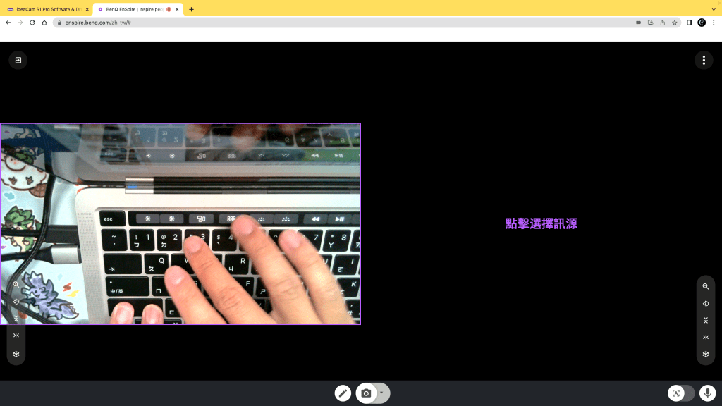 - 右邊為「自動對焦」功能。一般來說ideaCam會自動對焦到合適的位置,但當光源不足的時候,或是要展示較小的物體時,有時候會出現沒有對焦的狀況,這時候就可以按下這顆按鈕,提醒系統要調整畫面至對焦狀態囉。