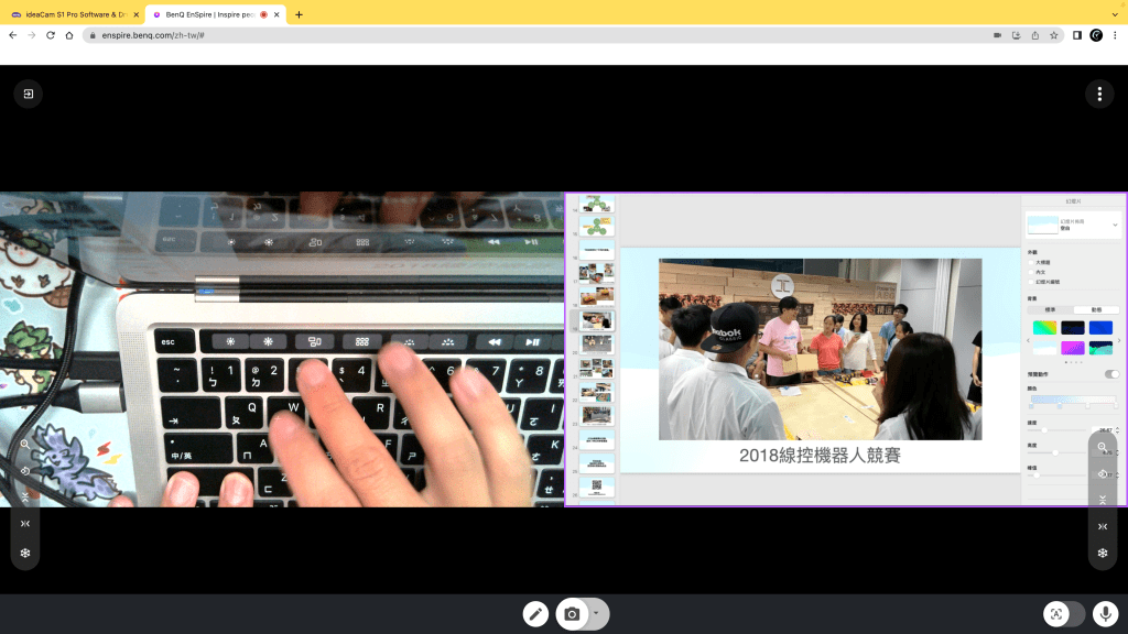 過去我在課程執行的時候,多半是透過多台裝置,如使用筆電本身的鏡頭當一號鏡位、手機做為二號鏡位,然後再同時連上Google meet,分別登入聊天室後分享畫面給同學。而這邊我們就可以快速切換,直接呈現給視聽者了解我們希望呈現的內容,並將「畫面主導權」完全的取回。下面就一起來看看如何使用吧。