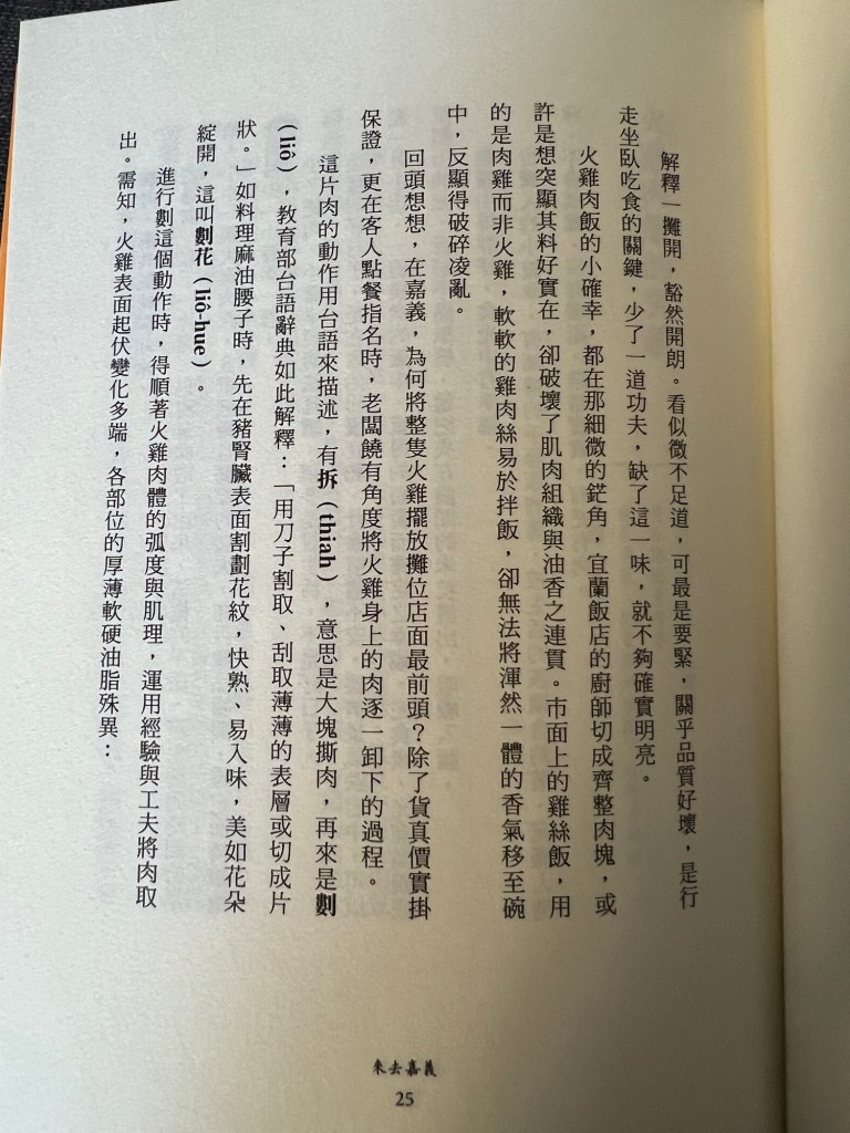 而對自己來說,讓圖像、聲音以及氣味能隨著文字穿透紙面的原因,還有作者將鄉土文學的融入。透過「台閩漢字」的方式,讓讀者在閱讀時,彷彿老闆就在身邊。